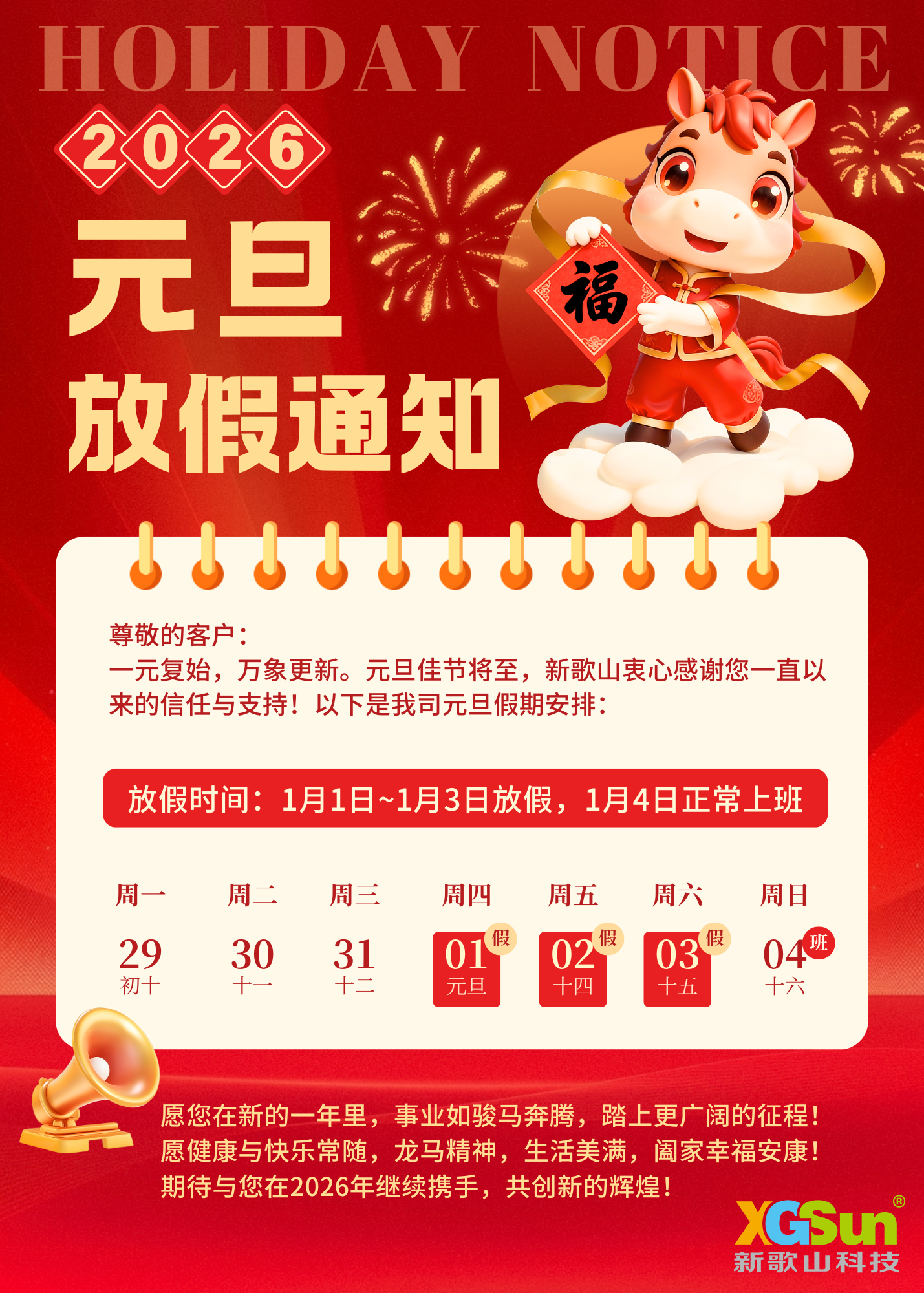 一元复始,万象更新。值此元旦佳节,新歌山谨向所有合作伙伴与客户致以诚挚的感谢与祝福!感谢您长久以来对新歌山的信任与支持。